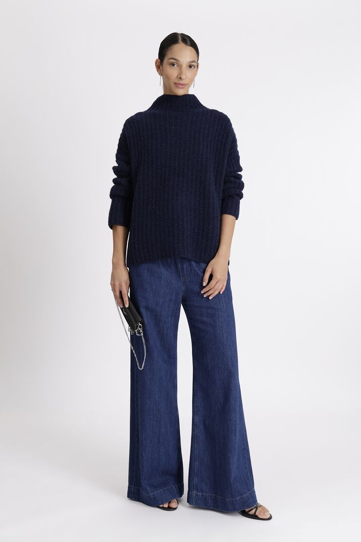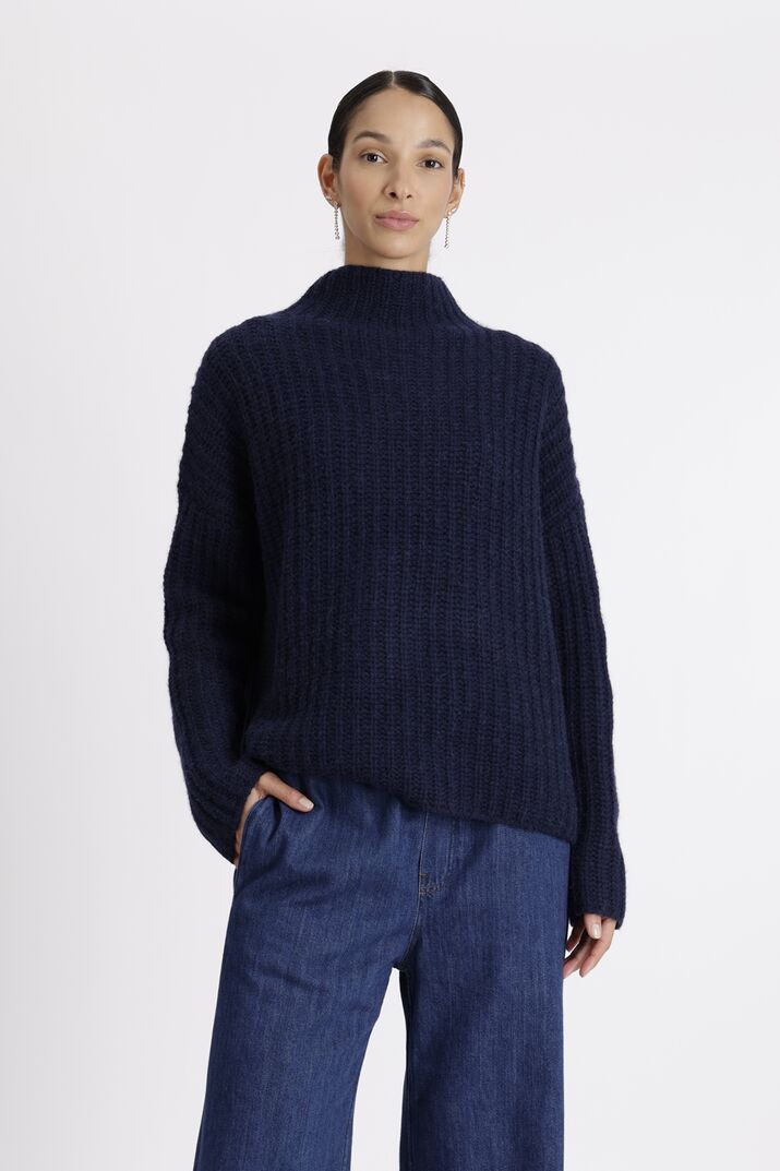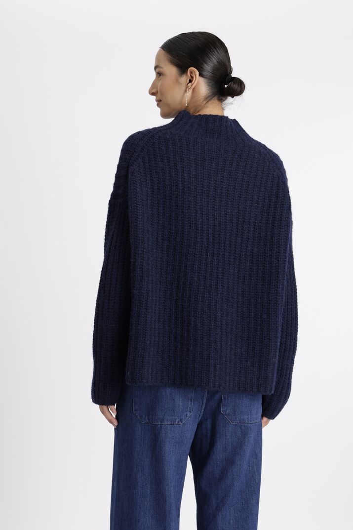 • Rippbündchen an Ausschnitt, Ärmeln und Bündchen