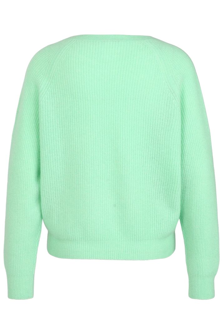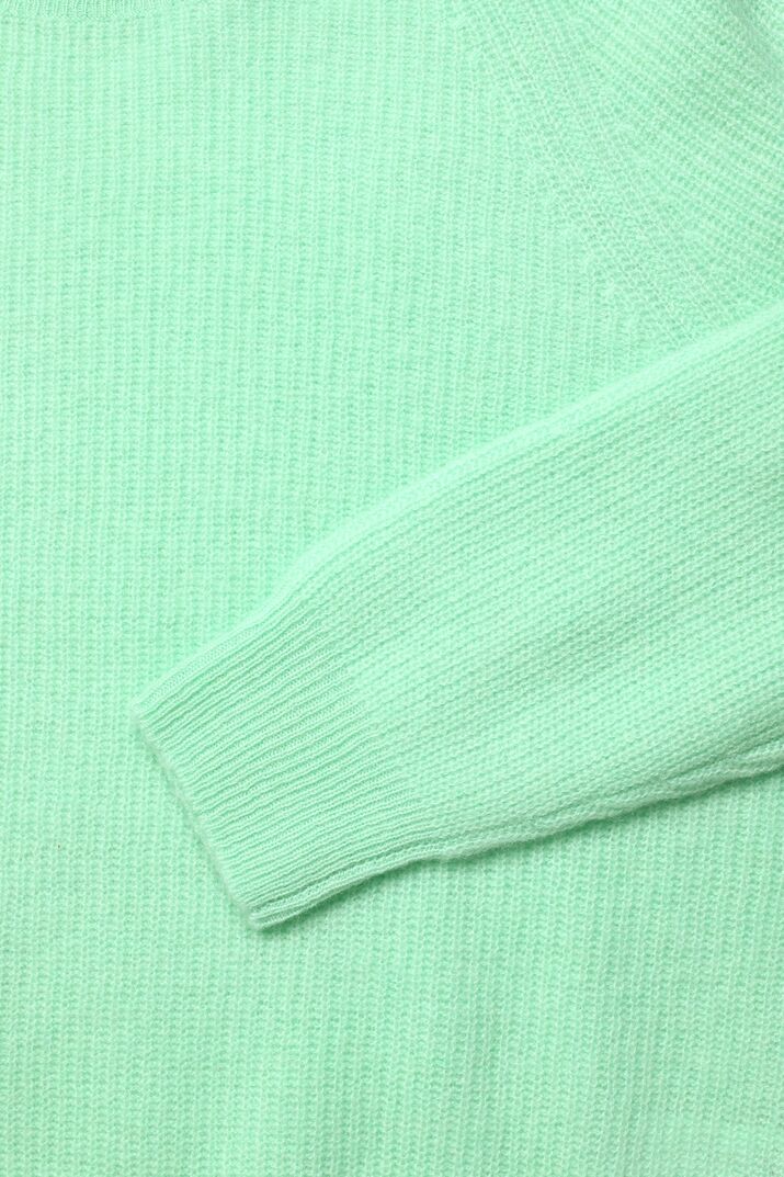Der relaxed geschnittene Pullover überzeugt durch ein luxuriöses Tragegefühl und die frische Farbe