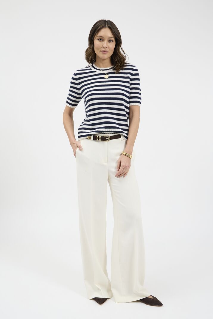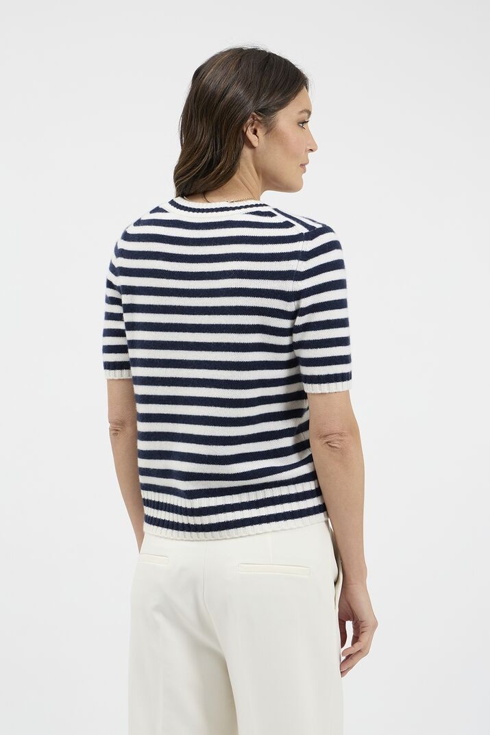 Gerippte Abschlüsse an Ausschnitt, Ärmeln und Saum
