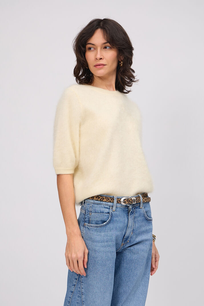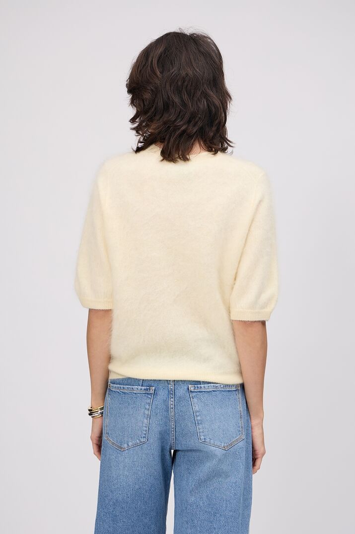 Fein gerippte Abschlüsse an Ausschnitt, Ärmeln und Saum