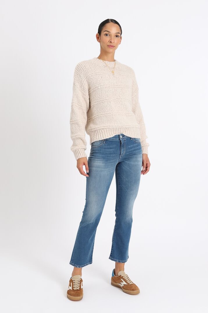 • Gerippte Abschlüsse an Ausschnitt, Ärmel und Saum